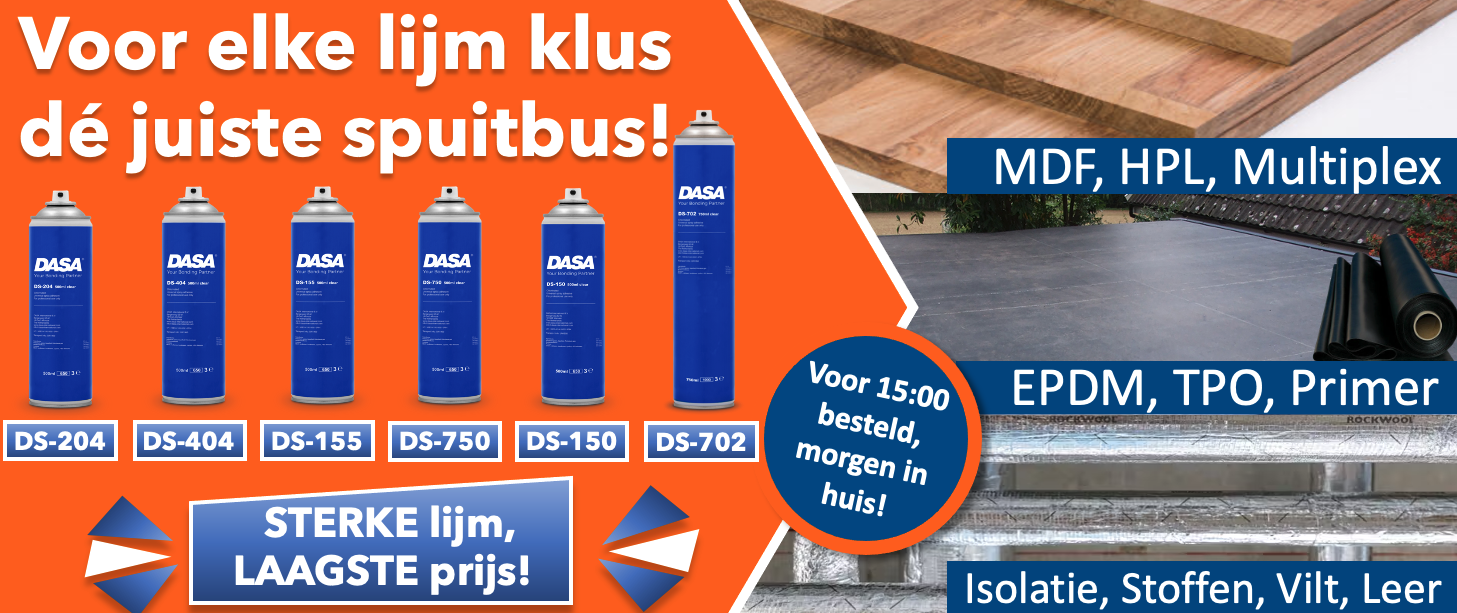 Dé online specialist in spuitlijm en drukvaten! Bij ons vind je alles voor jouw lijmproject: spuitlijm drukvaten, lijmspuitbussen, accessoires, contactlijm startpakketten en nog veel meer.
